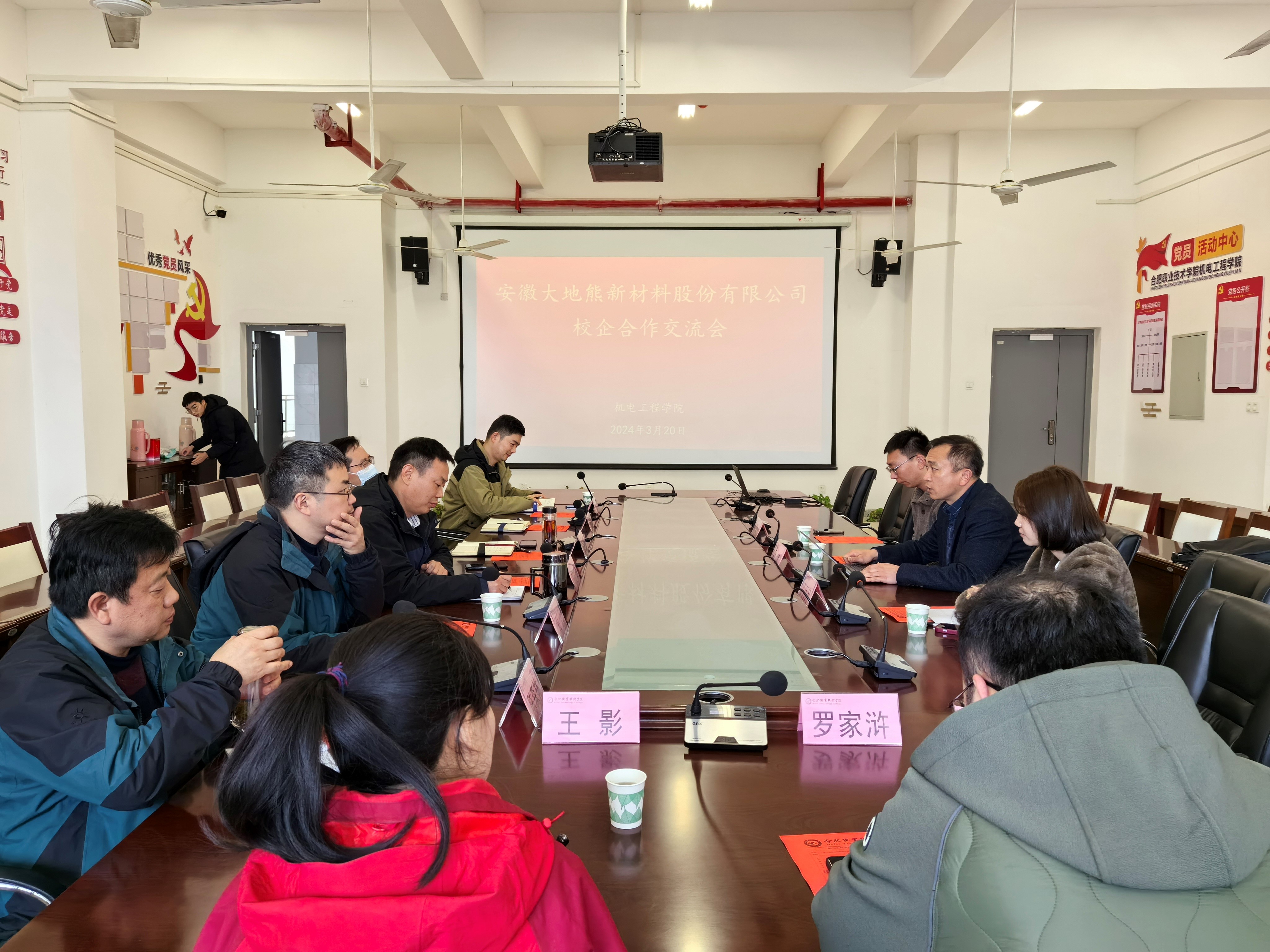 3月20日下午,安徽大地熊新材料股份有限公司行政总监吕涛等一行3人来访谈球吧,公司党政负责人及相关教研室专业老师人参加了此次对接,双方就产学研合作、人才培养及员工实习就业等方面工作进行了深入的交流与探讨。