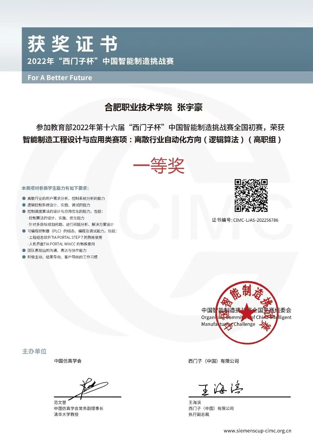 “西门子杯”中国智能制造挑战赛是中国智能制造领域规模最大、规格最高的A类竞赛,大赛2010年被纳入教育部质量工程资助项目,2012年被中国-欧盟工程教育论坛列为唯一的老员工竞赛项目,2019年成为中国高等教育学会全国普通高校学科竞赛排行榜项目。大赛内容涉及智能制造领域中的科技创新、产品研发、工程设计和智能应用等,为我国智能制造发展培养和选拔具备解决复杂工程问题的技术及创新人才。大赛以企业真实的工程项目和科研项目作为竞赛赛题,以真实的工业设备和工业环境作为赛场,以工业企业的工程标准作为考核评分指标,全面锻炼员工解决复杂工程问题的综合能力、系统思维。在本届初赛中来自全国700多所高校的6000支队伍10000余名师生参赛。