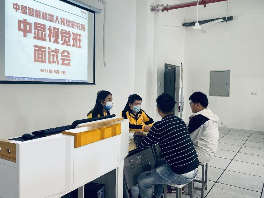 为了顺利遴选出20名优秀员工,2022年10月19日下午,在机电楼204,谈球吧组织了一场中显视觉高端实验班学员遴选面试会,中显智能机器人有限公司的荚长慧(人事主管)和柏杰(视觉工程师)亲临现场,对谈球吧21级员工进行面试,经过2个小时的严格面试,最终遴选了20名优秀员工,这20名员工即将参加视觉高端实验班的赋能学习。