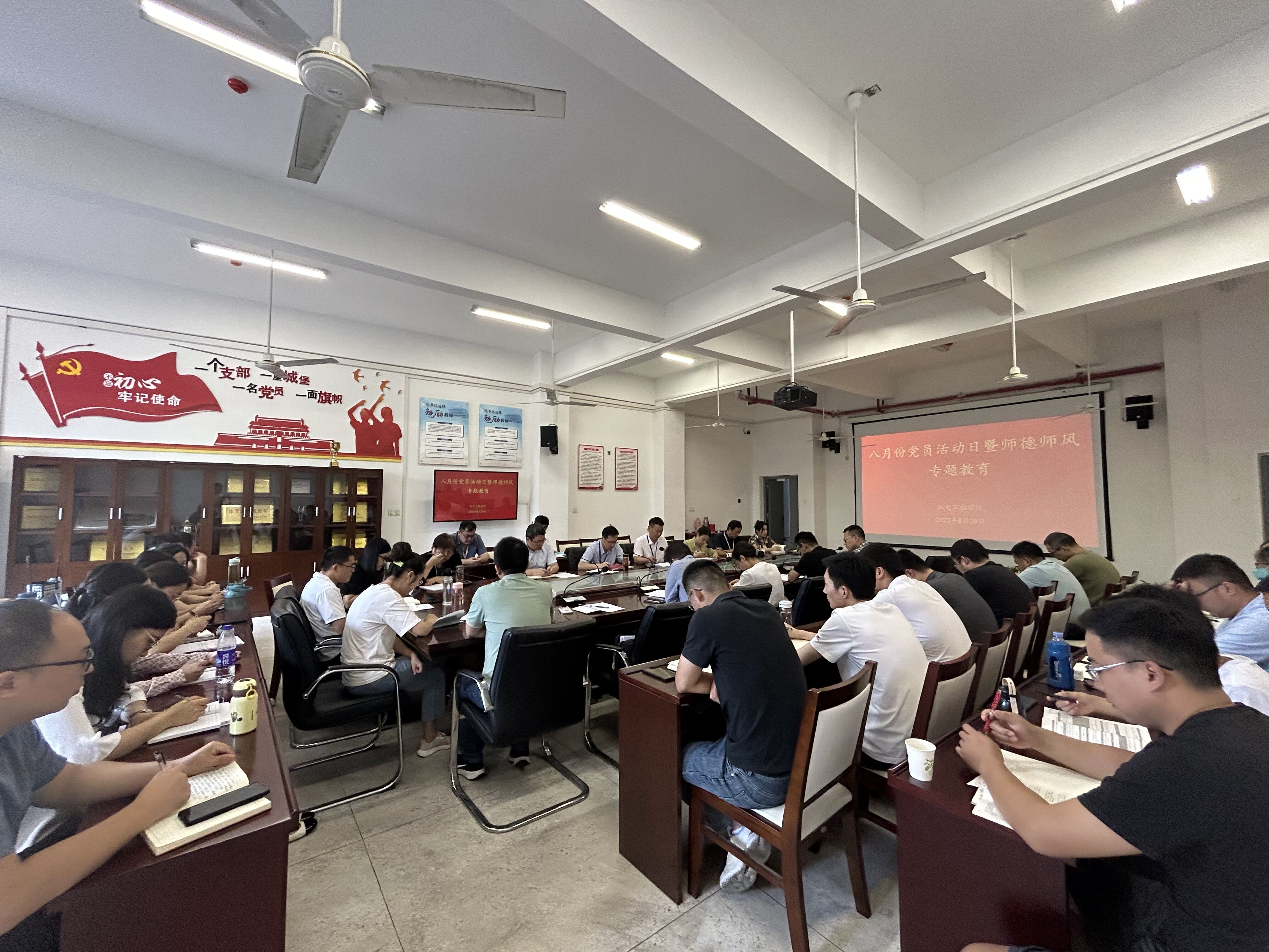 星霜荏苒,居诸不息。为持续提高教师的师德意识和职业道德水平,进一步加强教师队伍建设, 8月29日上午, 谈球吧在机电楼二楼会议室组织召开八月份党员活动日暨师德师风专题学习活动,公司全体教职工参加,会议由党总支副书记丁迎春(主持工作)主持。
