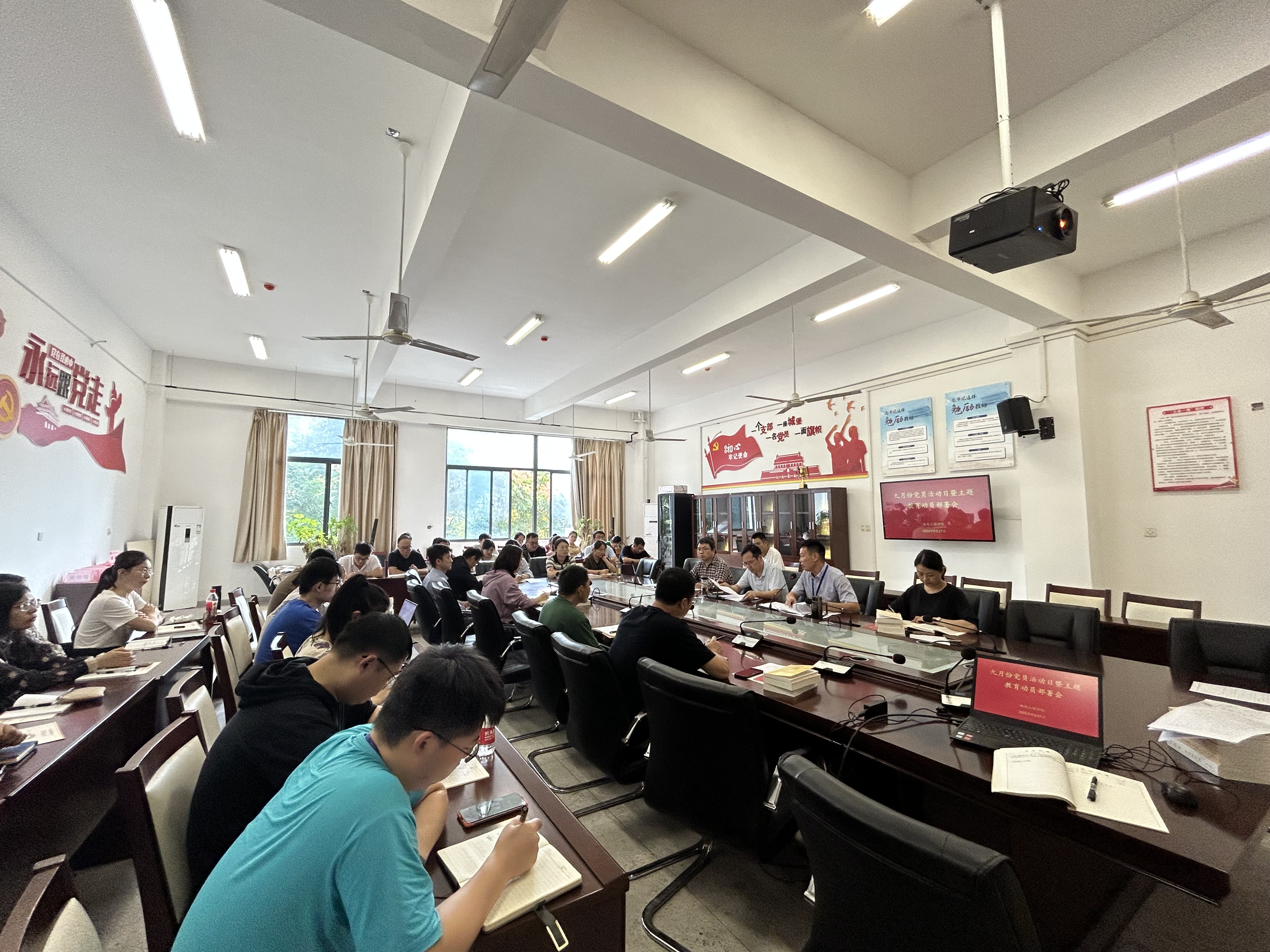 9月27下午, 谈球吧在机电楼二楼会议室组织召开九月份党员活动日暨主题教育动员部署会,公司全体教职工参加,会议由党总支副书记丁迎春(主持工作)主持。