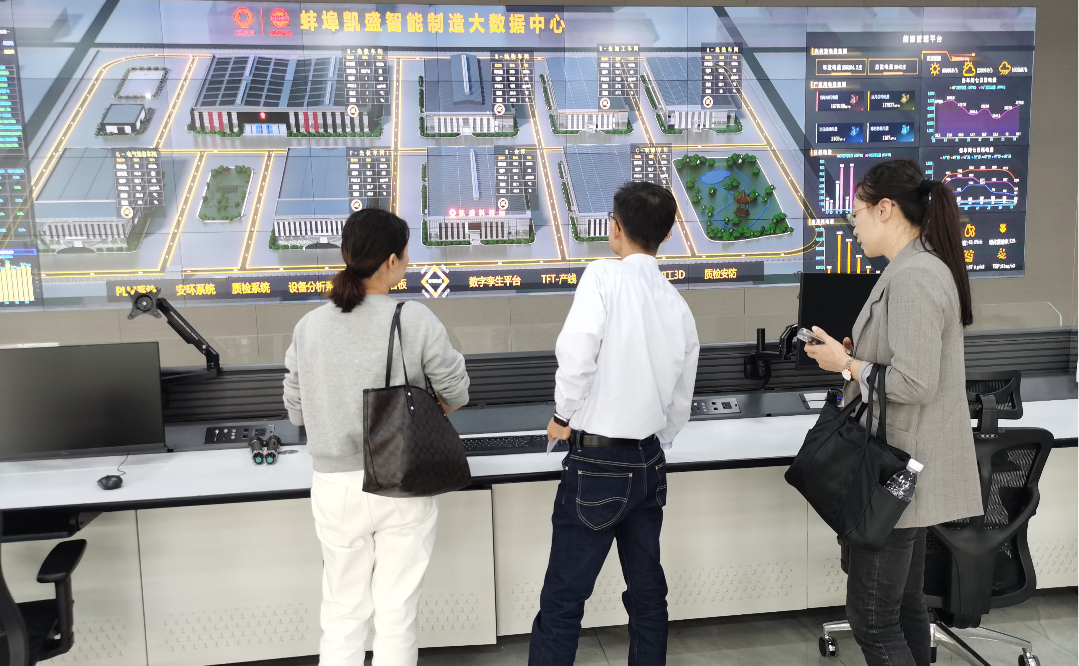交流会后,蚌埠凯盛工程有限技术总监邀请公司一行参观了凯盛智能制造大数据中心和自动化控制柜生产车间,并详细介绍了当前自动化行业发展现状,以及该类企业的人才需求状况,并对职业院校自动化行业人才培养提出了很多宝贵意见。